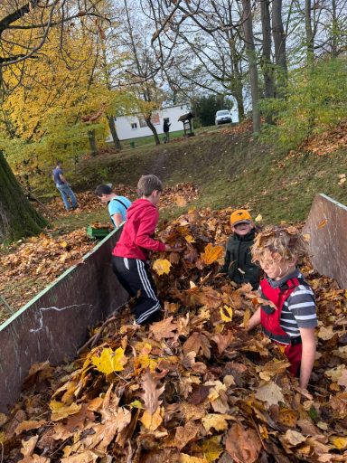 Zwischendurch gab es eine lustige Laubschlacht, bei der sich niemand lange bitten ließ. Außerdem wurde unser Blumenbeet bienenfreundlich gestaltet, damit es im nächsten Frühjahr summt und brummt.