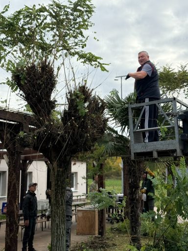 Mit Rechen, Schubkarren und sogar schwerem Gerät wurde das bunte Herbstlaub rund um die Sportanlagen zusammengetragen und entsorgt. Auch im Inneren der Gebäude herrschte reges Treiben: Die Umkleiden und Gemeinschaftsräume wurden gründlich gereinigt, und in der Sporthalle bekamen die Wände einen frischen Anstrich.