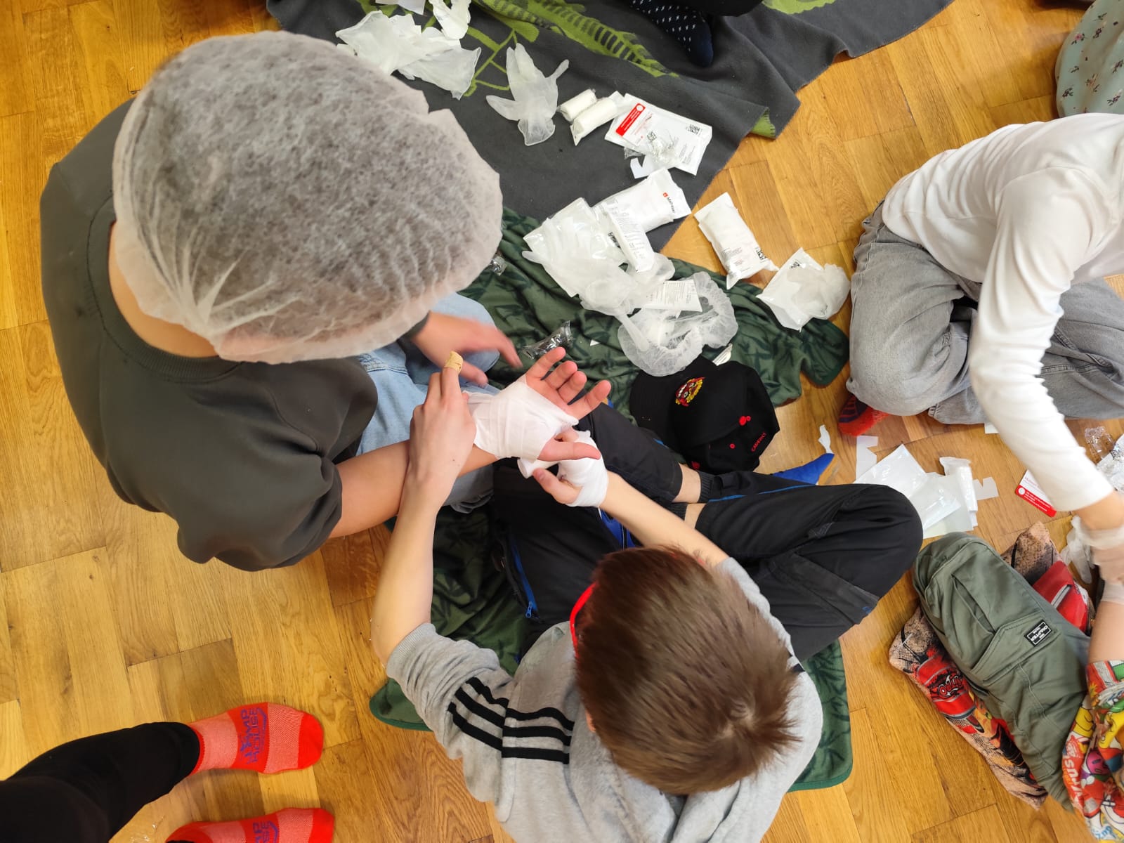 - Verbände richtig anlegen: Wie fest muss ein Verband sitzen? Wie versorgt man eine Schürfwunde am Knie? Mit viel Geduld wurde gewickelt und geklebt, bis jeder Handgriff saß.