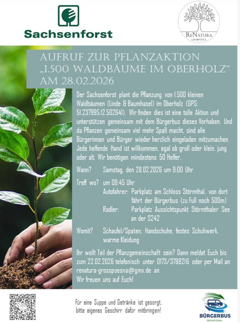 Am 28. Februar 2026 laden Renatura und der Sachsenforst alle naturbegeisterten Bürgerinnen und Bürger zu einer großen Pflanzaktion im Oberholz ein.